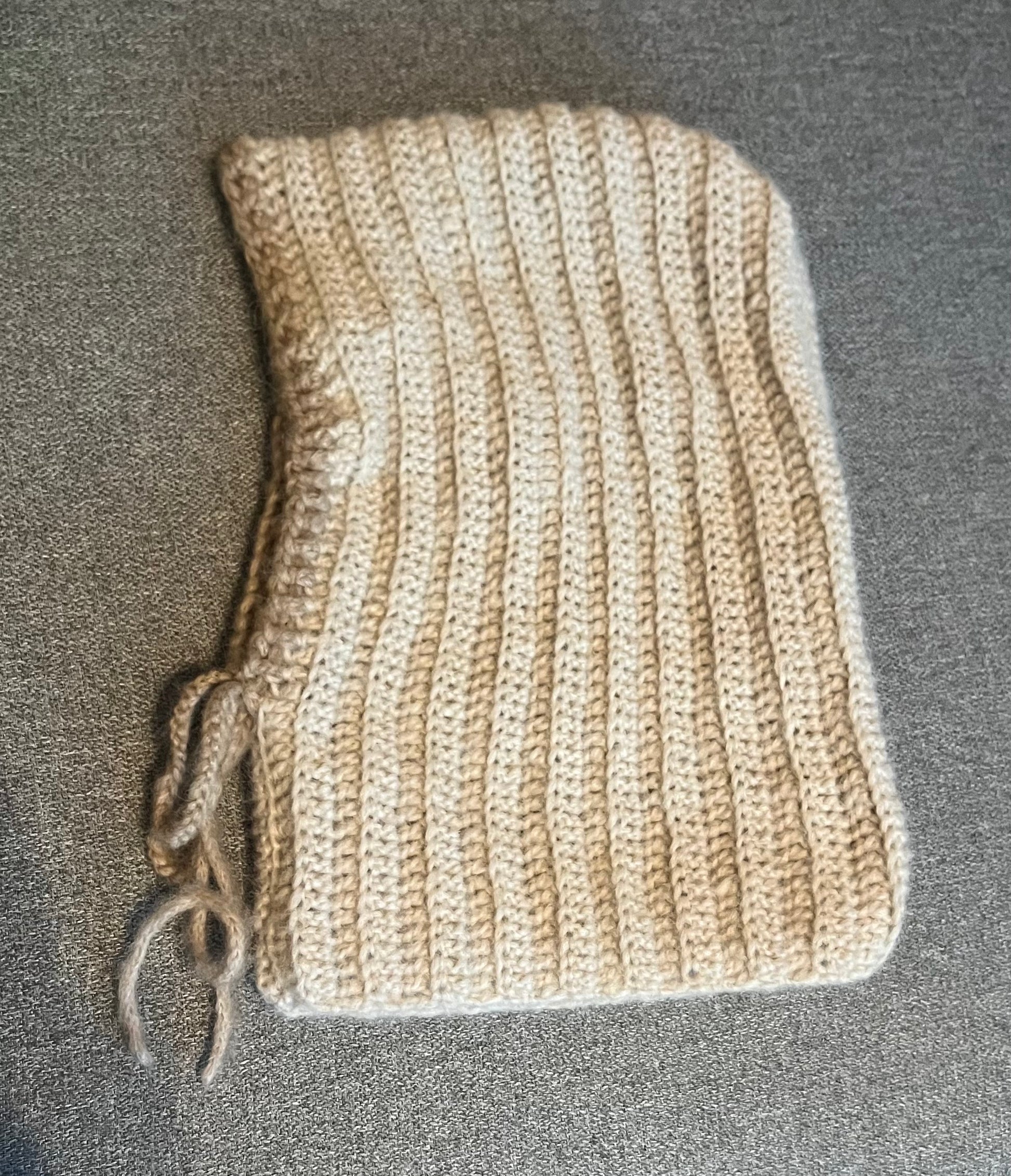 En kjempegod, praktisk og ikke minst søt detalj for å holde deg varm på vinteren 🩵 kan også bli mer baggy av å løsne snoren. Fargen er beige.