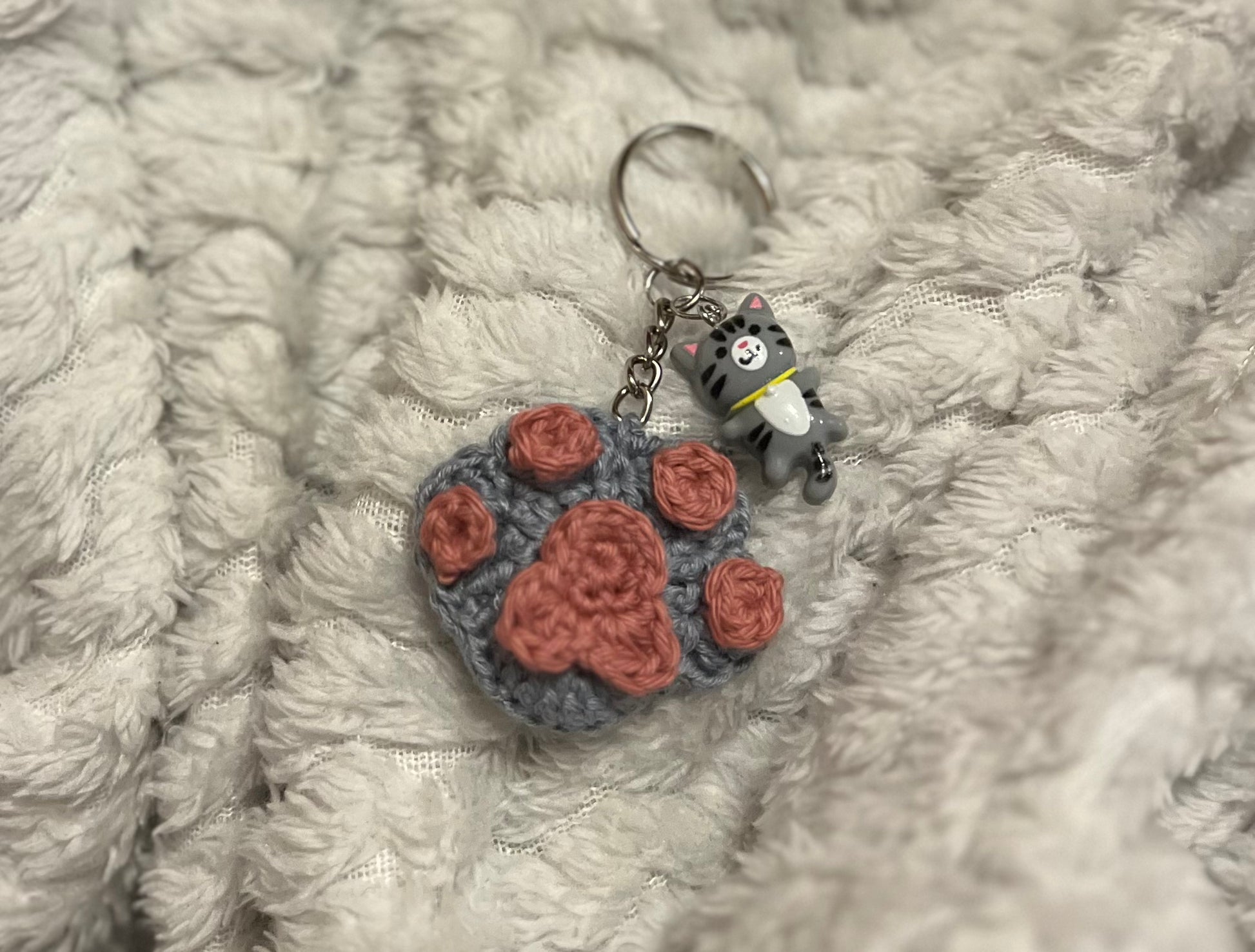 Nøkkelring/bag charm med kattepotw og en liten katte charm 😻