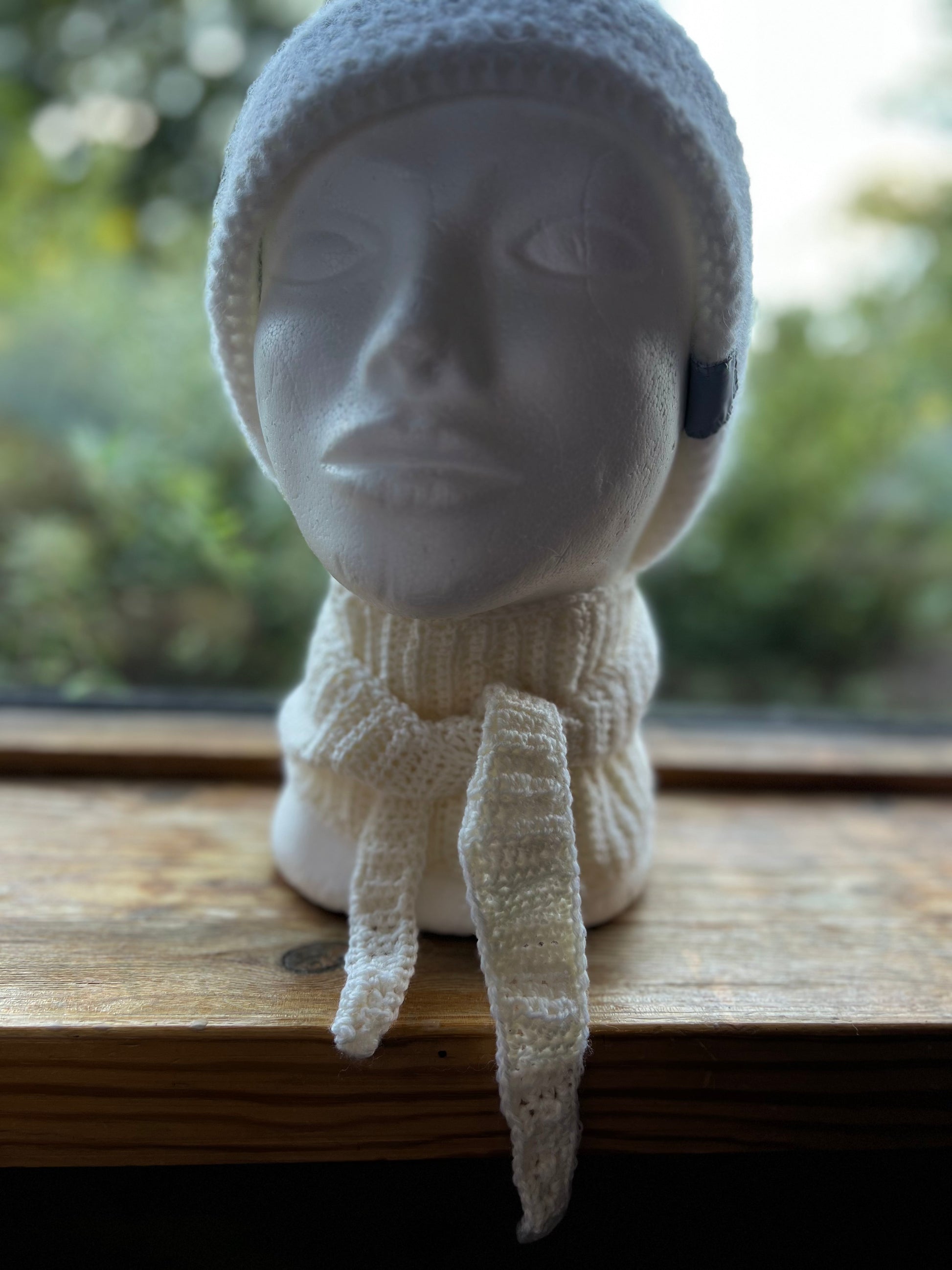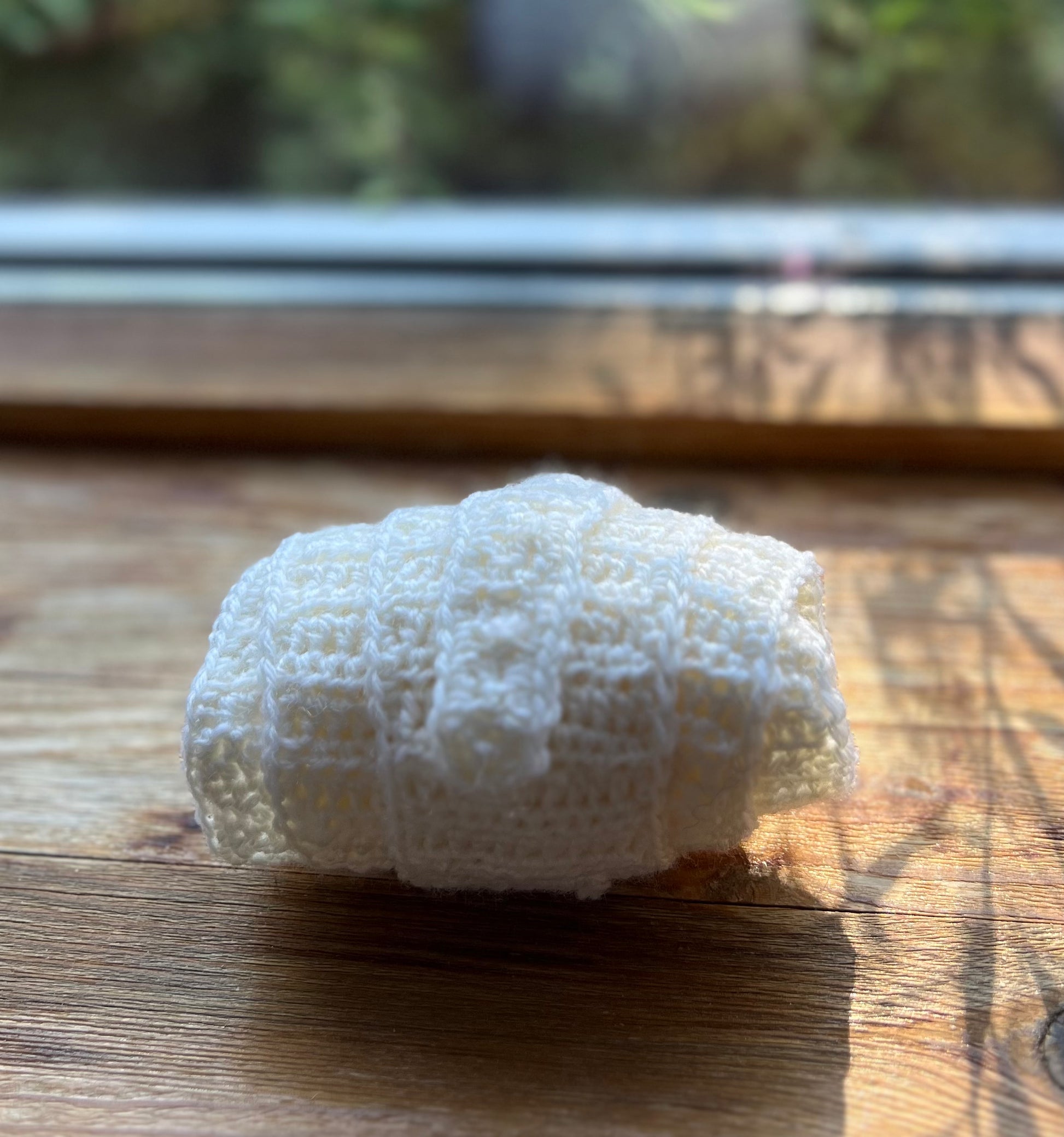 Hvit: heklet i 100% baby ull