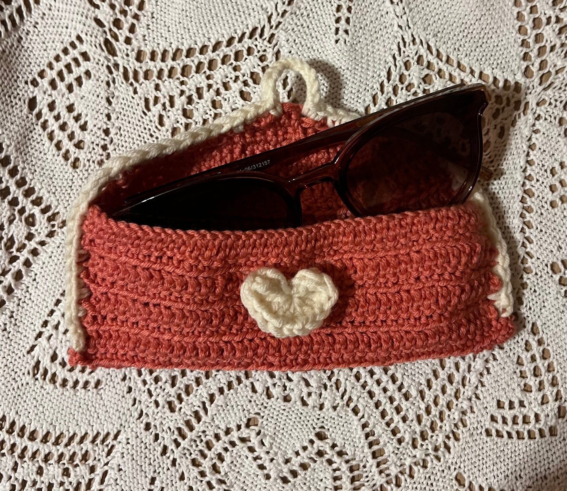 Et heklet etui som kan holde solbrillene beskyttet fra å få riper. Passer fint til å ha solbrillene oppi så de ikke ligger løst i veska eller sekken.