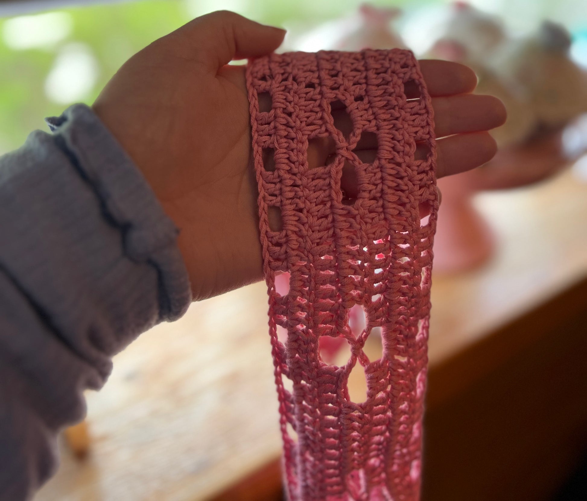 Et blomstrende hårbånd for solfylte dager og søte øyeblikk. Heklet i luftige masker med blomsterdetaljer som gir håret et hint av vår hele året!